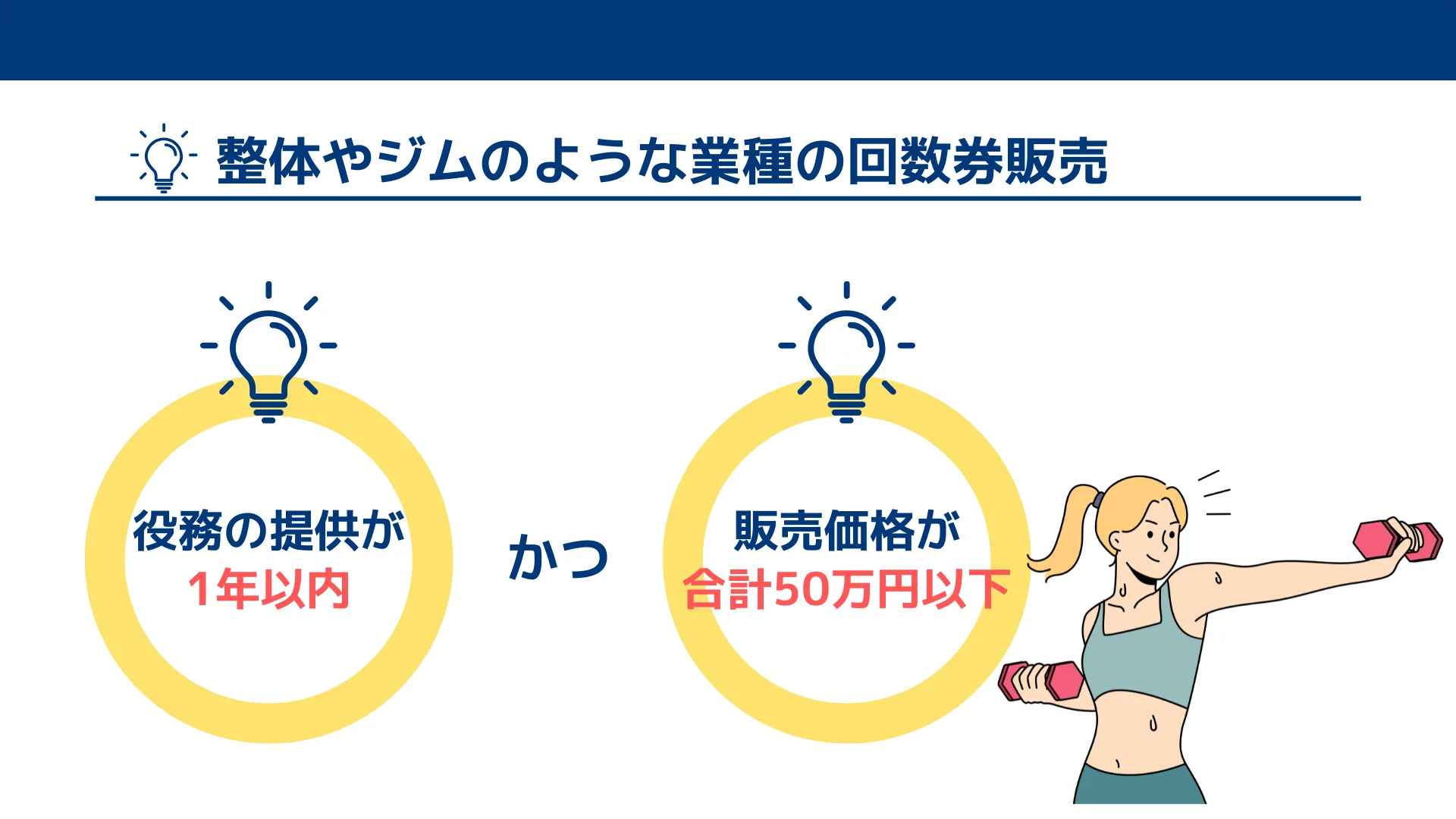 整体やジムなどのサービスでは、「役務の提供が1年以内に完了すること」が基本的な条件となります。