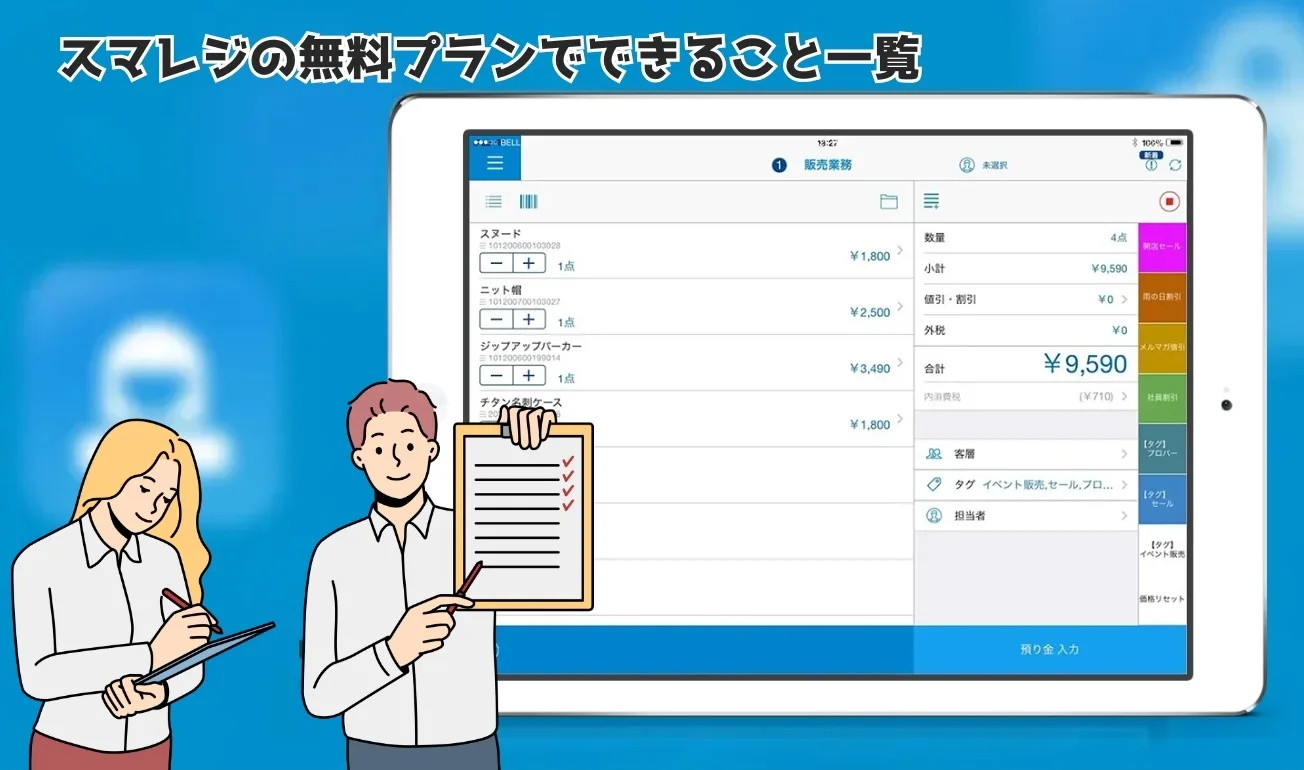 スマレジの無料プランは、月額0円で基本的なレジ会計や売上分析ができ、小規模店舗や個人事業主にとって導入しやすいPOSレジです。