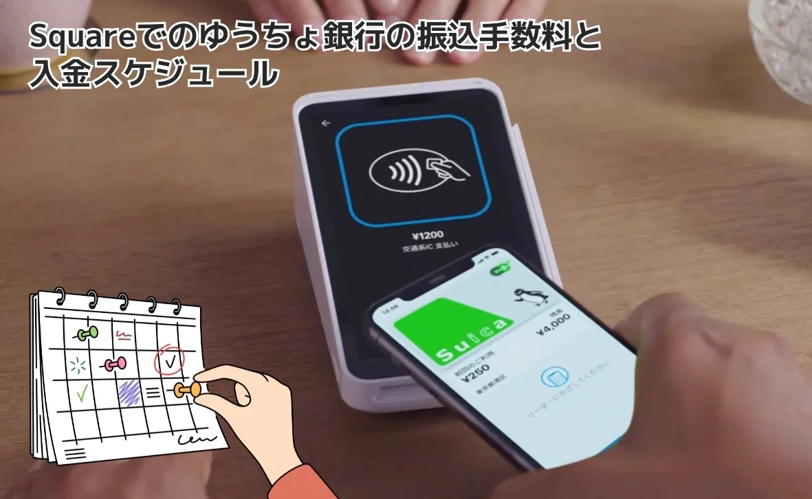 Square(スクエア)のゆうちょ銀行口座登録方法や、振込手数料、入金スケジュールについて解説しました。